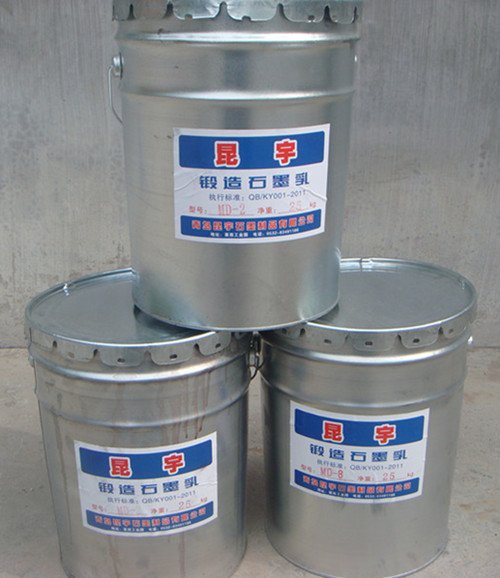 我公司生产的锻造石墨乳是黑色,每桶标准25公斤,是有色金属热加工中理想的高温脱膜润滑剂,在锻造、金属压加工等行业,广泛应用。